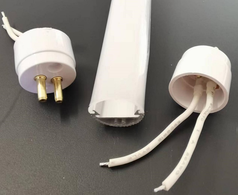 शेवटी, चित्रात दर्शविल्याप्रमाणे, T5 दिव्यांसाठी G5 एंड कॅप दोन्ही टोकांना आहेत. त्याचे कार्य एलईडी ट्यूब स्थापित करणे आहे. या एंड कॅप्समध्ये सामान्यतः दिवे लावण्यासाठी G5 पोर्टशी पॉवर लाइन जोडलेल्या असतात.